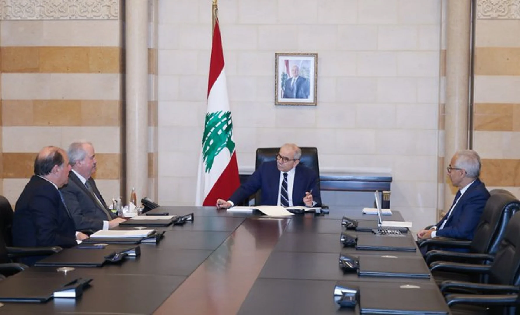 اجتمع رئيس مجلس الوزراء الدكتور نواف سلام في السرايا الحكومية مع وزير المال ياسين جابر، ووزير الاقتصاد والتجارة الدكتور عامر البساط، حاكم مصرف لبنان السيد كريم سعيد.