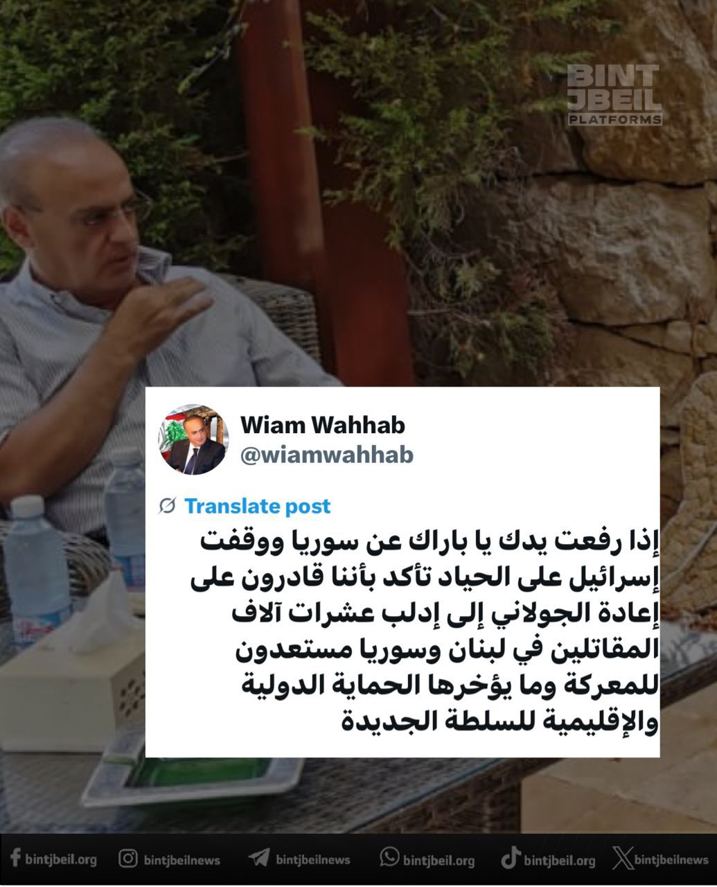 وئام وهاب: اذا كان براك معتاداً على التجارة فيجب ان يعلم بأن لبنان ليس ملك أبيه ليبيعه في سوق نخاسته عليكم ابلاغ واشنطن بتغييره اذا كنتم تحترمون أنفسكم