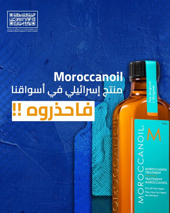 كشفت حملة مقاطعة داعمي “إسرائيل” في لبنان بناء على معلومات وصلتها من أحد المتابعين، عن وجود منتج إسرائيلي يدخل الأسواق اللبنانية ويحمل اسم “Moroccanoil”* ، وهو علامة تجارية عالمية تُنتِج مستحضرات تجميلية (الزيوت الطبيعية وسواها).