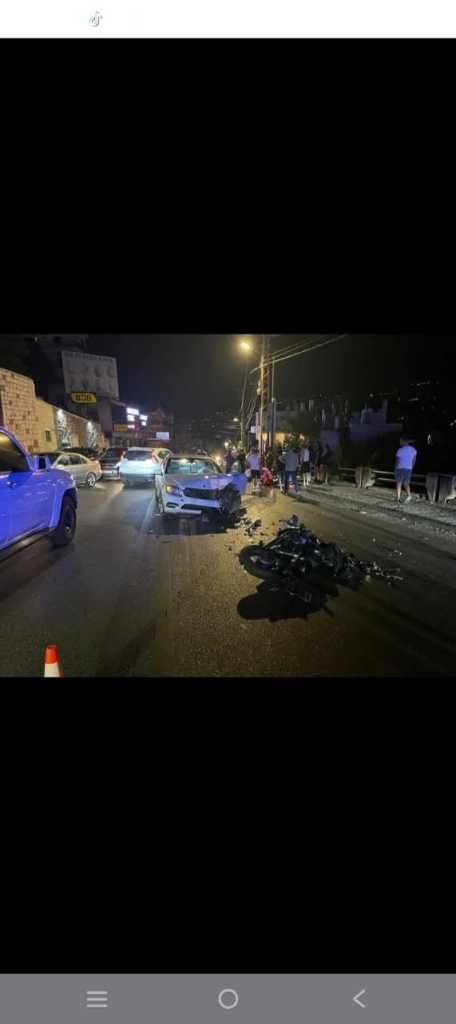 سجل منذ قليل حادث سير في بلدة أميون – الكورة حيث صدمت سيارة من نوع مرسيدس كان يقودها المدعو “ن.ه” دراجة نارية يقودها أحد الأشخاص من التبعية السورية يدعى “ز.ش”