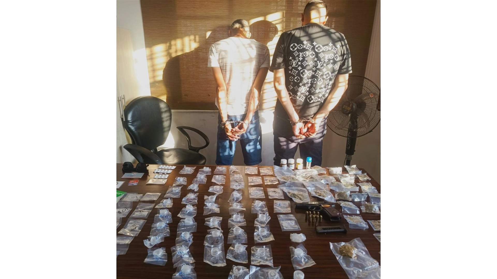 وبتفتيشهما والدرّاجة، عُثر على مسدس حربي وكميّات مختلفة من المواد المخدّرة (باز الكوكايين، كوكايين هيرويين، كريستال ميث، ماريجوانا، السَّلفيا، حشيشة كيف، وحبوب مخدّرة من أنواع مختلفة، مقسّمة في أكياس وطبّات بلاستيكيّة ومعدّة للتّرويج.
