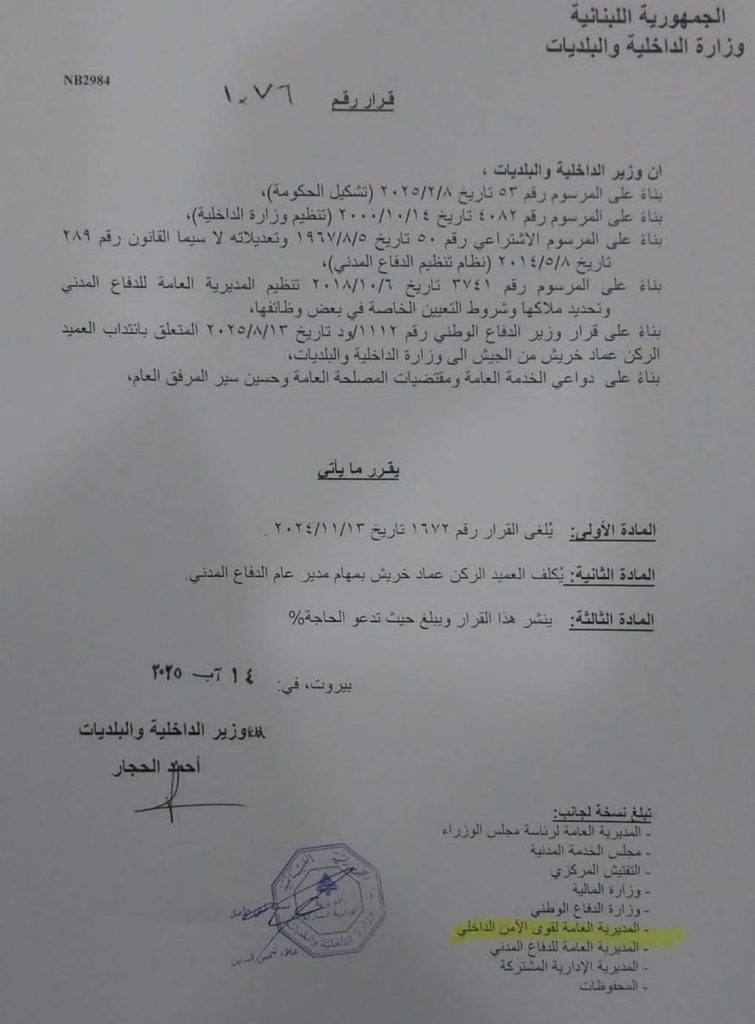 اخبار محليةعلى مدار الساعة *بالصورة: وزارة الداخلية والبلديات تعيّن العميد الركن عماد خريش مديرًا عامًا للدفاع المدني* أغسطس 14, 2025 0 132 FacebookTwitterWhatsApp