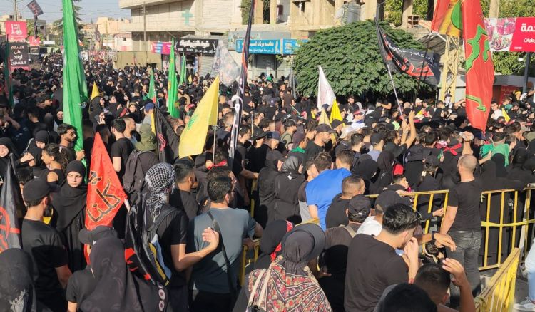 – تقاطرت إلى مدينة بعلبك منذ ليل أمس الوفود الشعبية للمشاركة في مسيرة “موكب الأحزان” التي نظمتها قيادة “حزب الله” في منطقة البقاع، أحياء لأربعينية الإمام الحسين في مقام ابنته السيدة خولة في بعلبك، قادمين من مختلف المناطق اللبنانية، وبخاصة من محافظتي بعلبك الهرمل والبقاع، والآلاف منهم وصلوا من بلداتهم إلى دوار الجبلي سيرا على الأقدام تأسيا بموكب الإمام زين العابدين والعقيلة زينب والسبايا من أهل بيت الإمام الحسين من الشام إلى كربلاء بعد مرور أربعين يوما على واقعة الطف في كربلاء، حيث انطلقت المسيرة المركزية نحو المقام يتقدمها حملة الشعارات الحسينية والأعلام والرايات، وكشافة الإمام المهدي، ولبسة الأكفان في مشهدية تؤكد الاستعداد للشهادة على خط ونهج الإمام الحسين في نصرة الحق ومواجهة الظلم والظالمين، وفاعليات نيابية وبلدية واختيارية واجتماعية وعشرات آلاف المشاركين الذين غصت بهم قاعات وباحات مقام السيدة خولة بنت الإمام الحسين، والطرقات المؤدية إليه.