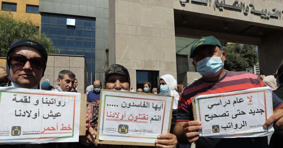 “تُعرب نقابة المعلّمين عن استغرابها الشديد لعدم إقرار مجلس الوزراء، خلال جلستيه يوم الأربعاء وجلسة يوم الخميس، مشروع اعتماد مالي لصالح صندوق تعويضات أفراد الهيئة التعليمية في المدارس الخاصة، رغم الاتفاق الواضح الذي تمّ بين وزير المالية والنقيب منذ نحو شهرين.