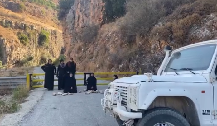 واقفلت النسوة الطريق بالحجارة والعوائق امام القوة الدولية، ورفعن صورا لشهداء المقاومة واطلقت هتافات ان “هذه الارض ستبقى طاهرة ولن تتنجس”، و”الموت لاسرائيل”.