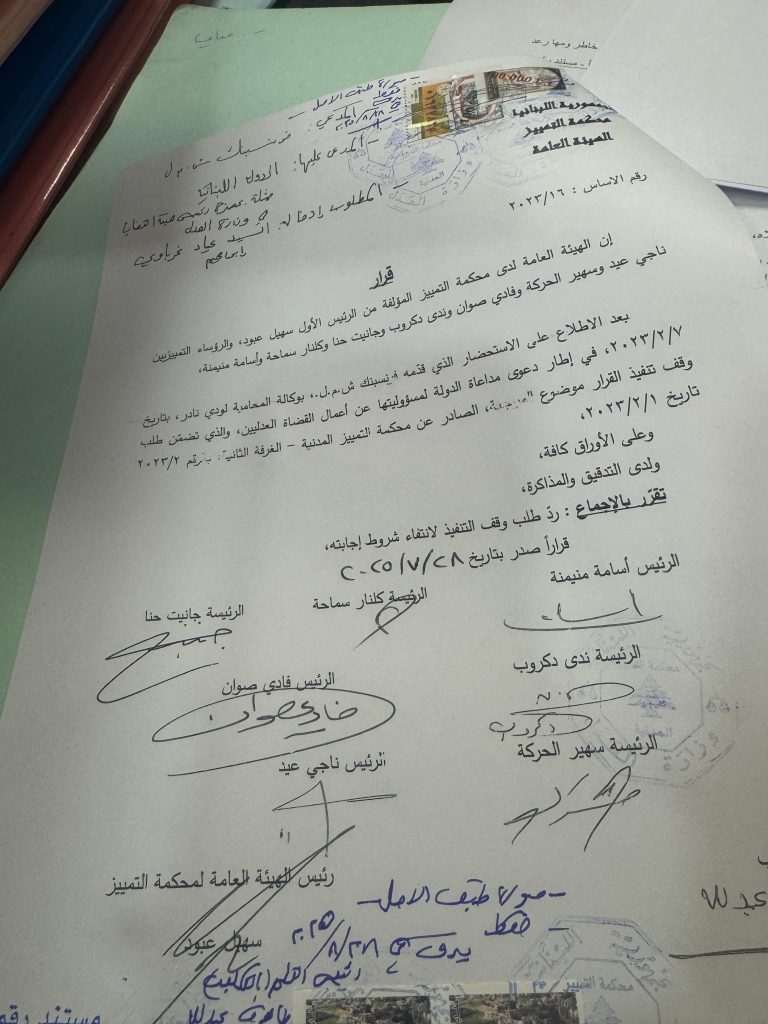أصدرت الهيئة العامة لمحكمة التمييز في لبنان قراراً قضى برد طلب وقف تنفيذ قرار محكمة التمييز تاريخ 1/2/2023 الذي كان قد قضى بفسخ قرار محكمة الاستئناف، وتصديق القرار الابتدائي الذي سمح بالتنفيذ على أموال “فرنسبنك” تأميناً لدين مودع لديه.
