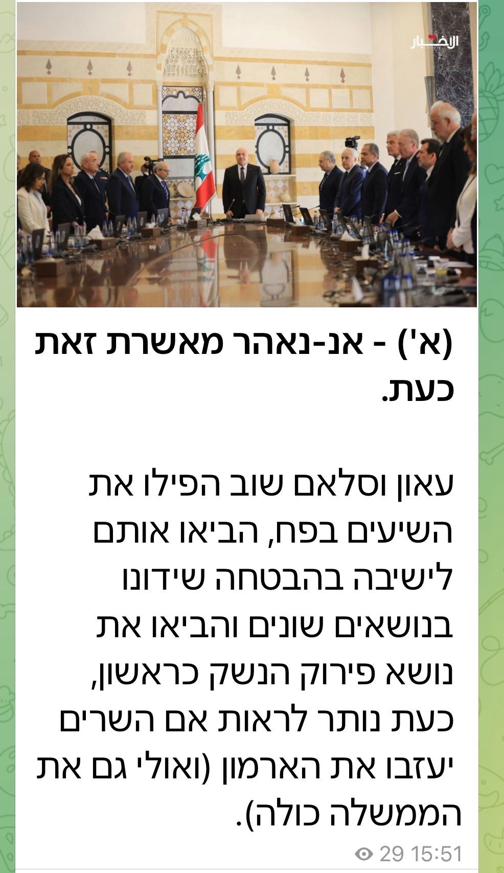 اخبار مهمةعلى مدار الساعة اعلام العدو: عون وسلام أوقعوا الشيعة في الفخ، جلبوهم إلى اجتماع بوعد مناقشة مواضيع مختلفة وجلبوا موضوع نزع السلاح كأول بند، والآن يبقى أن نرى إذا ما كان الوزراء سيغادرون القصر . سبتمبر 5, 2025 0 60 FacebookTwitterWhatsApp