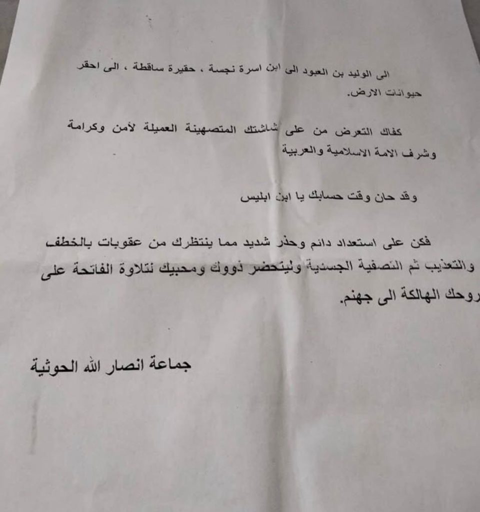 اخبار محليةعلى مدار الساعة يالصورة تهديد الإعلامي وليد عبود بالخطف والقتـ.ـل من خلال منشورات أمام منزله موقعة باسم جماعة إرهـ.ـابية سبتمبر 8, 2025 0 140 FacebookTwitterWhatsApp