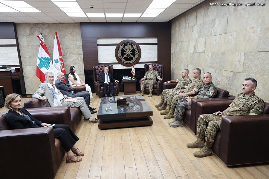 استقبل قائد الجيش العماد رودولف هيكل في مكتبه في اليرزة المبعوث الخاص للرئيس الفرنسي إيمانويل ماكرون الوزير السابق جان إيف لودريان على رأس وفد مرافق، بحضور السفير الفرنسي في لبنان Hervé Magro وتناول البحث الأوضاع العامة في لبنان والمنطقة وسبل دعم الجيش في ظل التطورات والتحديات الراهنة.