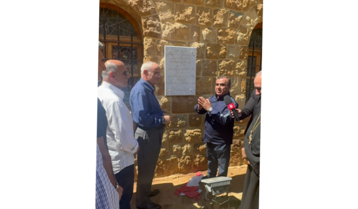 وخلال المناسبة، أزاح الوزير منسّى الستارة عن لوحة تذكارية وُضعت على حائط الكنيسة من البلاط الرخامي المحفور بماء الذهب، عربون محبة وتقدير، كما أزاح الستارة عن تمثال “بيت الشهيد” تخليدًا لشهداء الجيش اللبناني، وتكريمًا خاصًا للعميد الطيّار بول معلوف والعميد الركن جاك أبي أنطون.