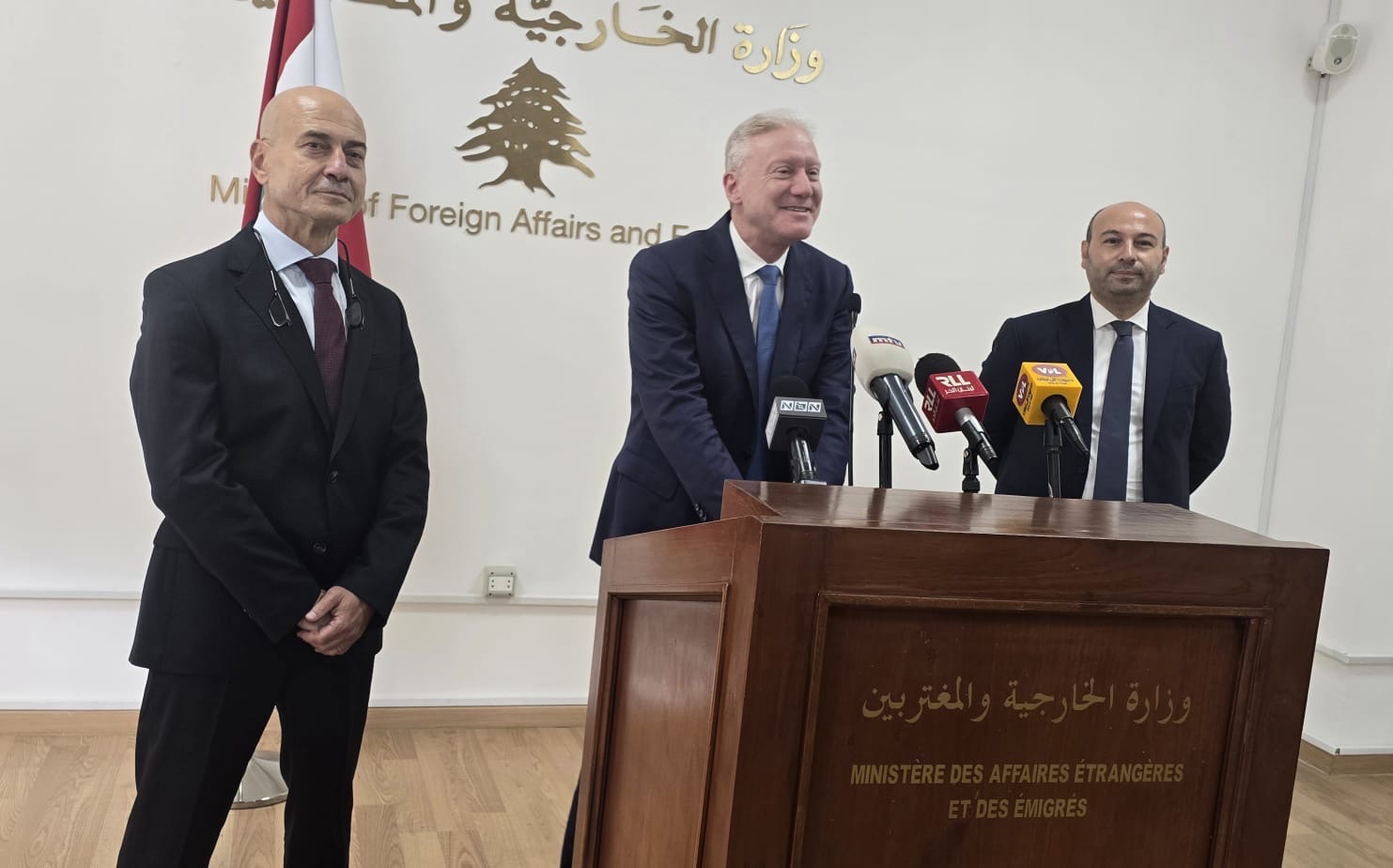أُقيم اليوم في وزارة الخارجية والمغتربين حفل التسلّم والتسليم بين الأمين العام السابق السفير هاني الشميطللي، الذي عُيّن سفيرا للبنان لدى إسبانيا، وخلفه الأمين العام الجديد السفير عبد الستار عيسى، وذلك بحضور وزير الخارجية والمغتربين يوسف رجي، وعدد من السفراء، وأركان السلك الديبلوماسي والإداري في الوزارة.