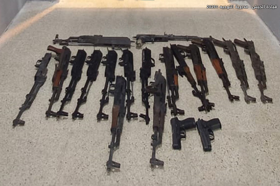 أعلن الجيش اللبناني أنّ وحداته واصلت ملاحقة المتورطين في شبكات الاتجار بالأسلحة والمخدرات في صيدا.فقد أوقفت دورية من مديرية المخابرات في بلدة عنقون المواطن (ح.م.) وضبطت في منزله كمية كبيرة من الأسلحة الحربية. كما أوقفت وحدة من الجيش عند مدخل مخيم عين الحلوة الفلسطيني (ي.خ.) وبحوزته ألفا حبة كبتاغون وأنواع مختلفة من المخدرات.