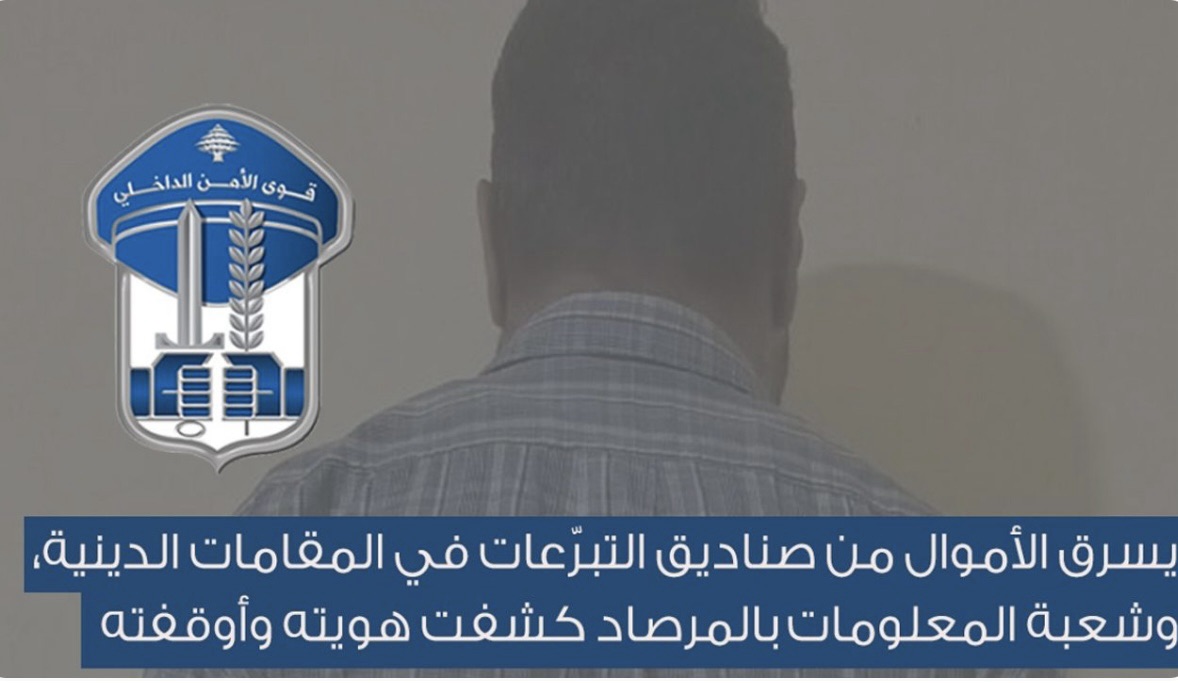أعلنت القوى الأمنية في بيان لها أنه وبعد أن “توافرت معطيات لدى شعبة المعلومات حول قيام شخص مجهول الهويّة بتنفيذ عمليّات سرقة أموال من داخل صناديق التّبرّعات والنذورات في عددٍ من المناط على أثر ذلك، تبيّن أن وبنتيجة المتابعة، في تاريخ 10/9/2025حضر شخصٌ مجهول إلى أحد المقامات في بلدة كفرنبرخ، وحاول سرقة الأموال من صندوق النذورات، ولدى مشاهدته من قبل أحد الأشخاص لاذ بالفرار”.