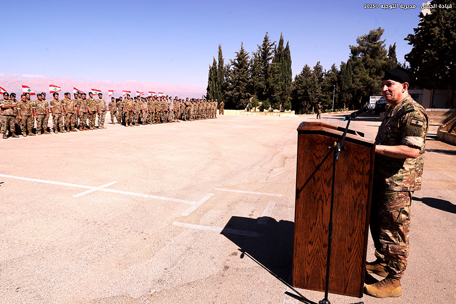 وأضاف: “أمن الوطن أمانة في أعناقنا، وقيادة الجيش ملتزمة بقدسية مهمتها، وحريصة على المصلحة الوطنية وعلى أمن جميع اللبنانيين، والجيش مستمر في تحمل مسؤولياته في ظل المرحلة الاستثنائية الراهنة، وسط ما تمر به البلاد من ظروف، ولا سيما الاعتداءات المستمرة من جانب العدو الإسرائيلي، والتحديات الأمنية الكبيرة”.