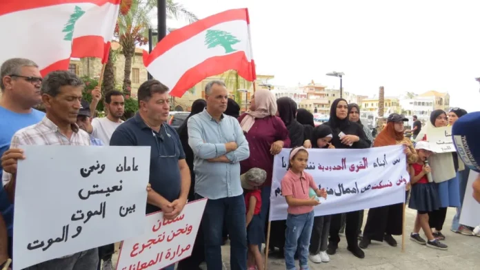 “أرضنا ليست للبيع، سنتان ونحن نتجرع مرارة المعاناة، إلى متى التقاعس في دعم ابناء القرى الحدودية”. هذه عينة من الشعارات المكتوبة، رفعها عشرات أبناء القرى الحدودية المهجرين قسراً من بيوتهم المدمرة ومزروعاتهم المحروقة.