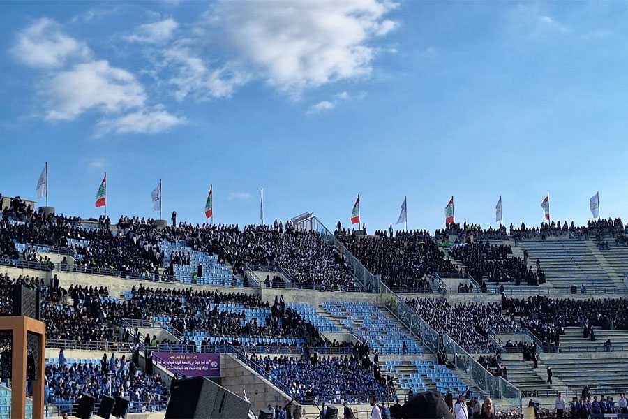 امتلأت المدرجات بأكثر من 74,475 كشافًا وكشّافة قدموا من مختلف المناطق اللبنانية، كما أعلن المفوّض العام لكشافة الإمام المهدي (عج)، في حضور رسمي وشعبي حاشد يعكس حجم المناسبة ورمزيتها. واستهلّت الفعالية بعروض موسيقية قدّمتها الفرقة الموسيقية التابعة للكشافة، تضمّنت مجموعة من الأناشيد الخاصة بالمناسبة، لتتبعها لوحة بصرية ضخمة شكّل فيها المشاركون عبارة “أجيال السيد” على المدرج الجنوبي، في مشهد لافت يرمز إلى وحدة الصف والانتماء.