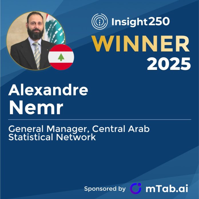 في منافسة غير مسبوقة، ومن بين آلاف الترشيحات، تم اختيار السيد الكسندر نمر مدير وصاحب الشركة العربية المركزية للاحصاءات, C.A.S.N ضمن الفائزين بجائزة Insight250 لعام 2025.