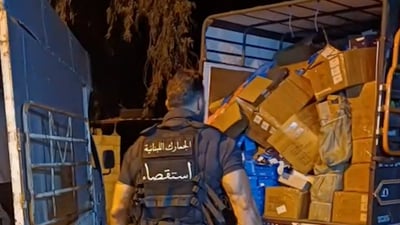 اخبار محليةعلى مدار الساعة !مداهمة.. وضبط كمية كبيرة جداً من الأحذية المهربة أكتوبر 27, 2025 0 58 FacebookTwitterWhatsApp تمكنت المديرية العامة للجمارك – ضابطة صيدا، بعد معلومات توافرت لديها، من مداهمة مستودع في منطقة الزهراني، عُثر بداخله على كمية كبيرة جداً من الأحذية المهربة. فتم ضبطها واقتيدت مع المخالف الى المركز لإجراء المقتضى القانوني.