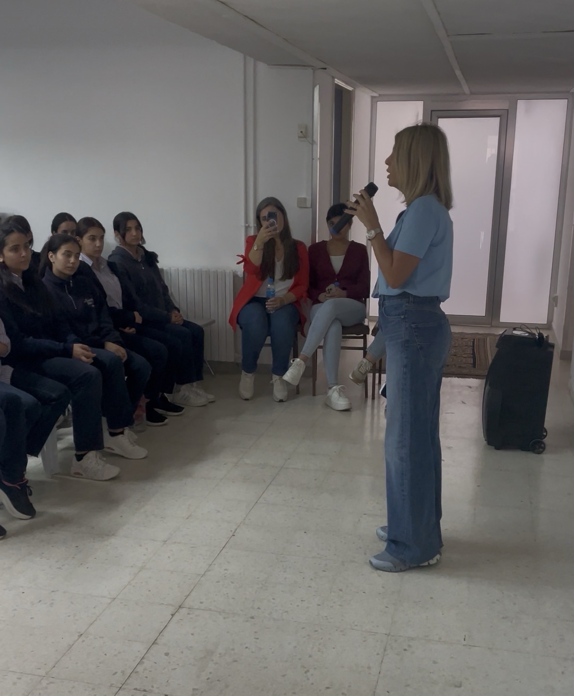 ومن ثمّ كان للأخصائيّة في علم النفس والمعالجة النفسيّة شارلوت الخليل حوارٌ توجيهيٌّ مع الطلّاب حول ما يمكن أن يتعرّضوا له نفسيًّا ومعنويًّا وعن كيفيّة المعالجة، وقسّمت خليل الطلّاب إلى مجموعاتٍ تخلّلها ورشاتُ عملٍ وتبادلٌ للآراء، أوضحت من خلالها أهميّة التبليغ في حال تعرّضهم للتنمّر أو لأيٍّ من مخاطر الإنترنت وعدم التردّد بالتحدّث مع أصحاب الاختصاص.