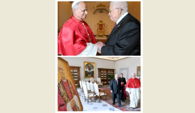 “استقبل البابا لاون الرابع عشر في القصر الرسولي بالفاتيكان الرئيس الفلسطيني والوفد المرافق .الحفاظ على الوضع القانوني والتاريخي للمقدسات الإسلامية والمسيحية في القدس”
