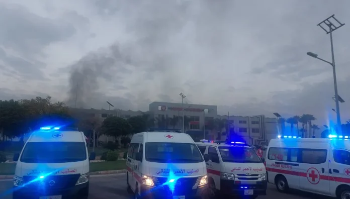 وتقوم فرق الدفاع المدني بعمليات الإطفاء والمساعدة على إخراج العمال والموظفين من داخل البناء، بالتعاون مع فرق الصليب الأحمر وجهاز الطوارئ والإغاثة.