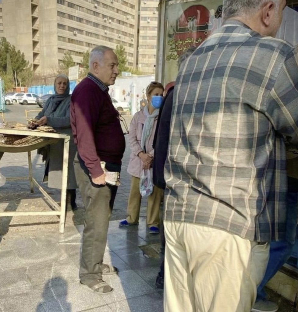ضجّت مواقع التواصل الإجتماعيّ، بصورة لرجل يُشبه رئيس الحكومة الإسرائيليّة بنيامين نيتناهو، وهو ينتظر في طابور لشراء الخبز أمام مخبز في حيّ إكباتان في العاصمة الإيرانيّة طهران