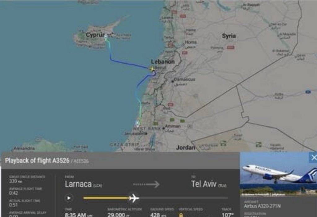 ومرّت الطائرة فوق بيروت بالقرب من المطار اليوم الأربعاء، وحلقت بعيداً عن الساحل اللبناني، ثم دخلت الأراضي الإسرائيلية من منطقة حيفا.