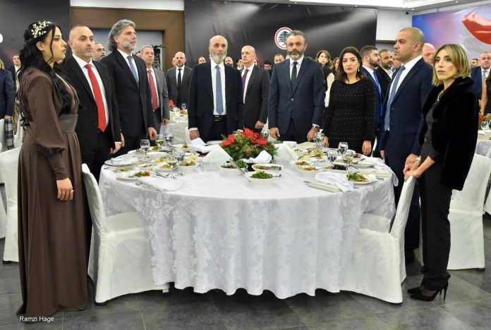 وكان قد استهل العشاء بالنشيد الوطني اللبناني ونشيد حزب “القوات اللبنانية”، بعدها ألقت عريفة الإحتفال بيرلا صليبي كلمة رحبّت في خلالها بالحضور، “الذي يشارك في العشاء السّنوي لمنطقة “عاليه” من أجل دعم منطقتنا. ومن معراب نرحّب بكم فردًا فردًا ونشكر حضوركم ولا سيّما أنه تكريم لنا”.