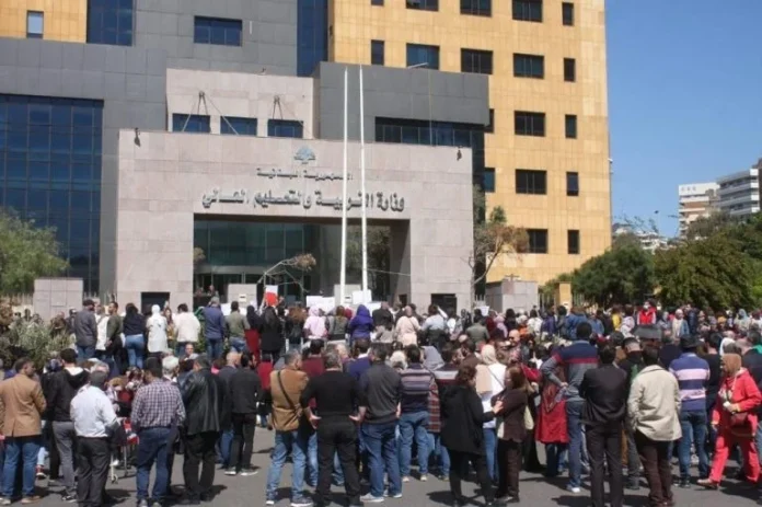 فّذ أساتذة من مختلف الروابط في التعليم الرسمي اعتصاماً أمام وزارة التربية في الأونيسكو للمطالبة برفع الرواتب بالتزامن مع إضراب ليومين.
