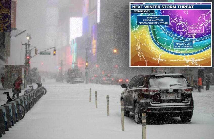 تتّجه عاصفة شديدة تُعرَف بـ”القنبلة الإعصارية” نحو مدينة نيويورك حيث تهدد بثلوج إضافية وانخفاض جديد للحرارة.