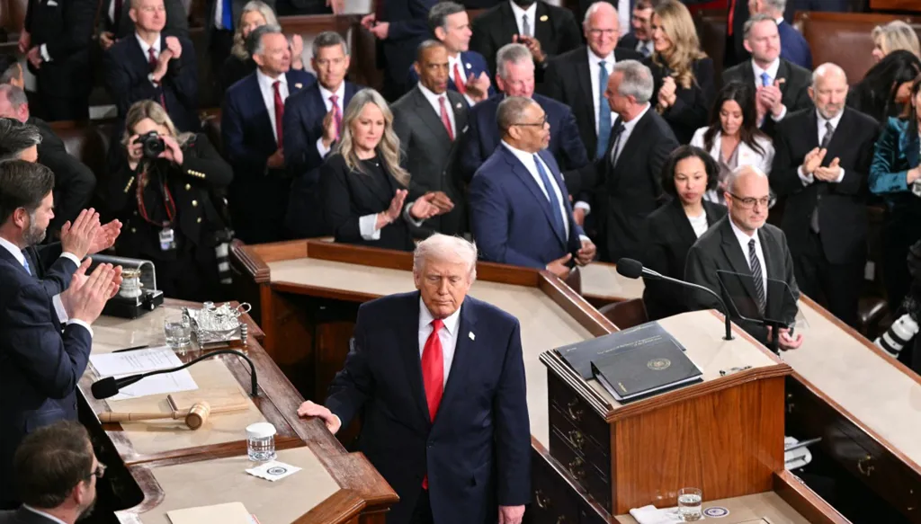 وقال وسط هتافات وتصفيق من الجمهوريين: “إذا كنتم توافقون على هذا الكلام، فقفوا وأظهروا دعمكم. إن أول واجب على الحكومة الأميركية هو حماية المواطنين الأميركيين، لا المهاجرين غير الشرعيين”.