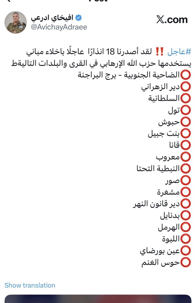 اخبار محليةعلى مدار الساعة الجيش الاسرائيلي : الغارات لا تزال مستمرة. كل من تم انذار منزله في الخرائط المرفقة فعليه البقاء خارج نطاق التحذير والّا يعود اليها مارس 2, 2026 0 10 FacebookTwitterWhatsApp الجيش الاسرائيلي : الغارات لا تزال مستمرة. كل من تم انذار منزله في الخرائط المرفقة فعليه البقاء خارج نطاق التحذير والّا يعود اليها