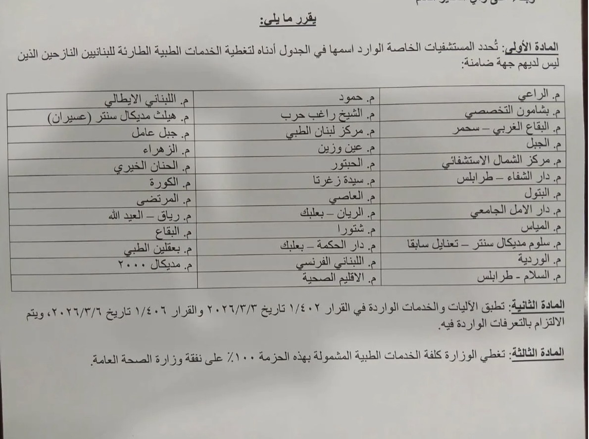اخبار محليةعلى مدار الساعة *بالصورة- لائحة بأسماء المستشفيات التي ستقدم خدمات طارئة للنازحين* مارس 12, 2026 0 14 FacebookTwitterWhatsApp