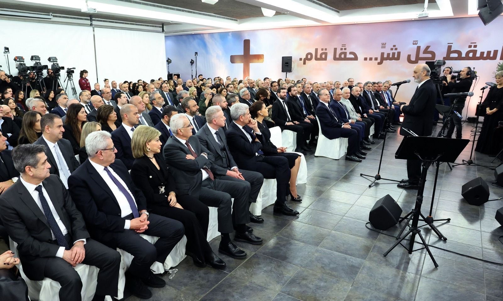 وعقب الريستال، ألقى رئيس حزب القوات اللبنانيّة سمير جعجع كلمة أكد فيها “أن شعوباً كثيرة حول العالم مرّت بعذابات كبيرة، إلا أن درب الصليب في لبنان كان طويلا واستمر نحو 40 عاماً”.