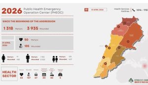 نشرت وزارة الصحة العامة التقرير اليومي الصادر عن مركز عمليات طوارئ الصحة حول تطورات العدوان الإسرائيلي على لبنان.