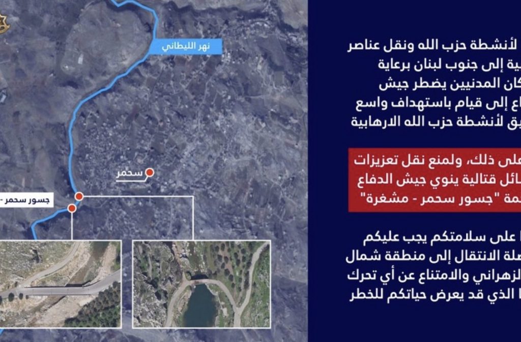 وأضاف أن الجيش الإسرائيلي ينوي مهاجمة جسري سحمر – مشغرة، بهدف منع نقل تعزيزات ووسائل قتالية إلى الجنوب.