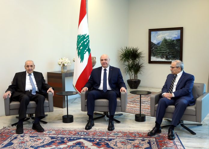 وقال إنه لا جدوى من الضغوط الإسرائيلية على لبنان لإلزام عون مكرهاً بلقاء نتنياهو؛ لأنه لا عودة عن قراره بحرق المراحل والاستجابة للقائه الذي يبقى معلقاً على ما ستتوصل إليه المفاوضات، آخذة بعين الاعتبار الثوابت الوطنية التي لا يحيد عنها، وكان رسمها كأساس لبلوغ النتائج المرجوة منها، وهي تشكل نقطة التقاء بين الرؤساء الثلاثة من موقع التباين بين عون وسلام من جهة، وبرّي برفضه المفاوضات المباشرة من جهة ثانية، مع أن الأخير كان قال كلمته في هذا الخصوص، ولم يُشهر سلاحه في وجه عون، ولن يكون منزعجاً إذا توصلت إلى ما يصبو إليه لبنان ويُجمع عليه الرؤساء، بخلاف حملات التهديد والتخوين التي يتزعمها حليفه «حزب الله»، من دون أن يقترح البديل بدعوته عون للتخلي عن الخيار الدبلوماسي لتحرير الجنوب من الاحتلال.