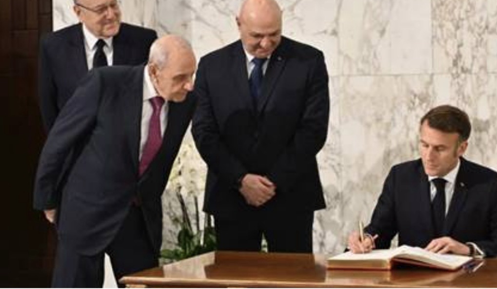 وبحسب الفيديو، فقد اقترب الرئيس بري من مكان جلوس الرئيس ماكرون عند الطاولة خلال كتابته الرسالة، في محاولة منه لاستراق النظر عمّا يكتبه في السجل الذهبي.