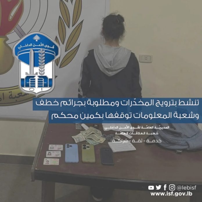 في إطار المتابعة المستمرة التي تقوم بها قوى الأمن الداخلي لمكافحة عمليات تجارة وترويج المخدّرات في مختلف المناطق اللبنانية وملاحقة المتورّطين بها وتوقيفهم، توافرت معلومات حول نشاط إحدى مروّجي المخدرات والخطف وعمليات التزوير في منطقة عكار.