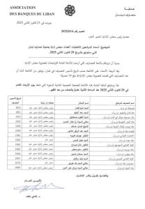 اخبار محليةعلى مدار الساعةمتفرقات *هذه هي أسماء المرشحين لانتخابات أعضاء مجلس إدارة جمعية المصارف* يناير 23, 2025 0 134 FacebookTwitterWhatsApp أصدرت جميعة المصارف أسماء المرشحين لانتخابات أعضاء مجلس إدارة جمعية مصارف لبنان، والتي ستجري بتاريخ 29 كانون الثاني الحالي. التفاصيل في الصّورة المرفقة