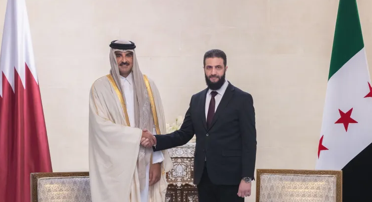 أعلن الديوان الأميري القطري في بيان، أن “أمير قطر تميم بن حمد آل ثاني جدد خلال لقائه الرئيس السوري في المرحلة الانتقالية أحمد الشرع، في قصر الشعب في دمشق، موقف دولة قطر الداعم لوحدة سوريا وسيادتها واستقلالها، مشيدا في هذا الصدد بالجهود التي تبذلها الإدارة السورية الجديدة لتحقيق الاستقرار، الحفاظ على مقدرات الدولة، وتأمين الاحتياجات الضرورية للشعب السوري”.