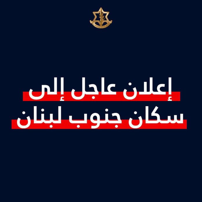 🔸جيش الدفاع لا ينوي المساس بكم. من أجل سلامتكم يحظر عليكم العودة إلى منازلكم في المناطق المعنية حتى إشعار آخر.