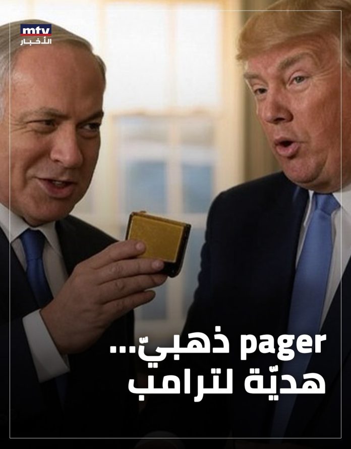 اخبار دوليةعلى مدار الساعة “بيجر” ذهبيّ هدية لترامب فبراير 5, 2025 0 203 FacebookTwitterWhatsApp قدّم رئيس الوزراء الإسرائيلي بنيامين نتنياهو إلى الرئيس الاميركي دونالد ترامب جهاز “بيجر” ذهبيّ وجهازاً عادياً كهدية تذكارية وذلك خلال زيارته إلى واشنطن