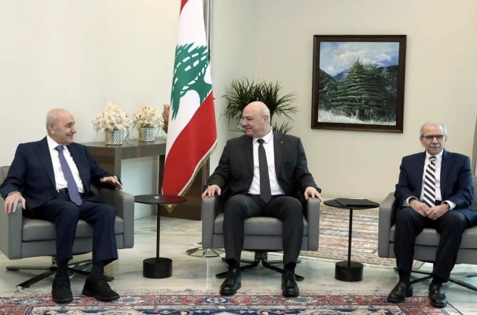 بعد ترقّب لأكثر من ساعة ونصف الساعة للاجتماع الثلاثي الذي ضمّ رئيس الجمهورية جووف عون، ورئيس مجلس النواب نبيه برّي، ورئيس الحكومة المكلّف نواف سلام، انتهى الاجتماع من دون الإعلان عن مراسيم تشكيل الحكومة اللبنانية الأولى للعهد.