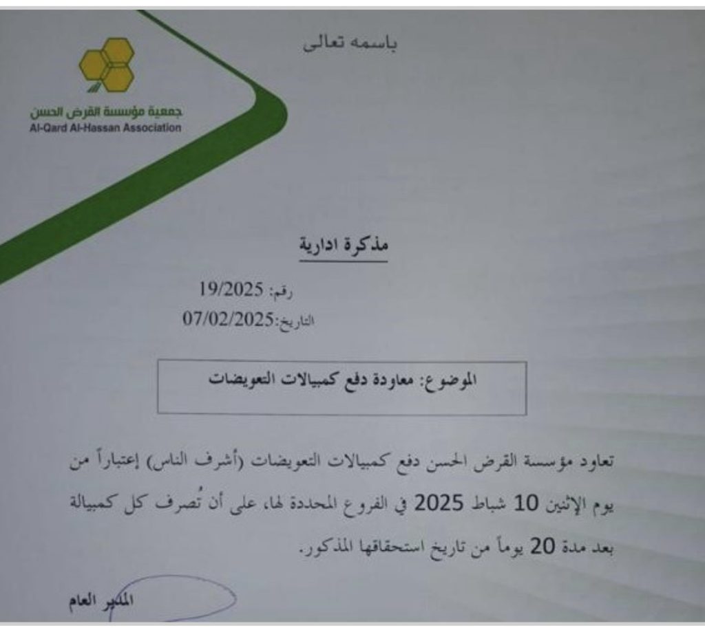 اخبار محليةعلى مدار الساعة *بالصورة: مؤسسة القرض الحسن تعاود دفع التعويضات* فبراير 8, 2025 0 124 FacebookTwitterWhatsApp ستعاود جمعية مؤسسة القرض الحسن دفع كمبيلات التعويضات اعتبارًا من يوم الإثنين 10 شباط 2025 في الفروع المحددة لها، على ان تصرف كل كمبيالة بعد مدة 20 يومًا من تاريخ استحقاقها المذكور.