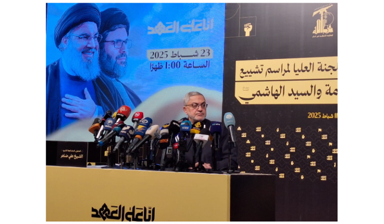 أعلنت اللجنة العليا لمراسم تشييع السيد حسن نصر الله والسيد هاشم صفي الدين في مؤتمر صحافي، اجراءات يوم التشييع، مشيرة الى أن “المراسم ستبدأ عند الأولى والوقت المقدر للفعاليات داخل مدينة كميل شمعون الرياضية حوالي 45 دقيقة، ثم سيكون دخول النعشين على آلية خاصة وسيكون بعدها كلمة لسماحة الأمين العام لحزب الله الشيخ نعيم قاسم”.