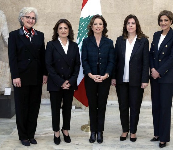اخبار محليةعلى مدار الساعة *صورة تجمع الوزيرات في حكومة العهد الاولى* فبراير 11, 2025 0 131 FacebookTwitterWhatsApp تمّ التقاط صورة في قصر بعبدا تجمع الوزيرات الخمس في الحكومة الجديدة: تمارا الزين (البيئة)، نورا بيرقداريان (الشباب والرياضة)، لورا الخازن لحود (السياحة)، حنين السيّد (الشؤون الاجتماعية)، وريما كرامي (التربية والتعليم العالي).*