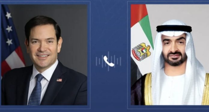 تلقى رئيس دولة الإمارات، الشيخ محمد بن زايد آل نهيان، اتصالاً هاتفياً من وزير الخارجية الأميركي، ماركو روبيو، تناول تعزيز التعاون المشترك ضمن العلاقات الاستراتيجية بين البلدين.