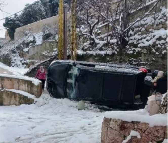 تسببت طبقة الجليد التي تشكلت على طرقات الضنية نتيجة الصقيع وانخفاض الحرارة إلى ما دون الصفر في وقوع حوادث انزلاق لعدد من السيارات في بلدات نمرين، بقرصونا، وبخعون، دون تسجيل إصابات، واقتصرت الأضرار على الماديات.