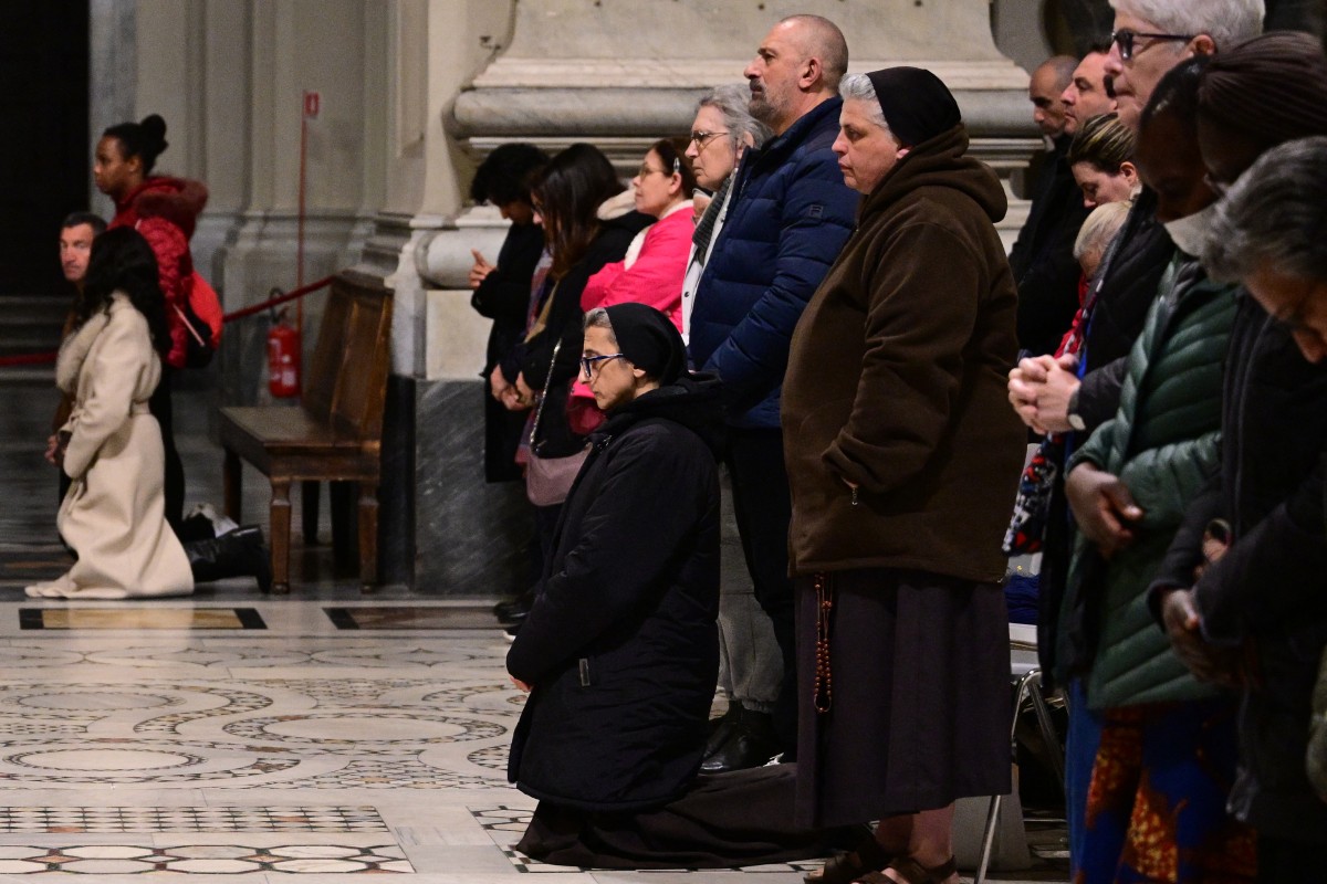 وأضاف: “لقد مرت الليلة بشكل جيد، والبابا نائم ويستريح”.في مستشفى جيميلي، حيث يرقد البابا فرنسيس منذ 14 شباط/فبراير بعد تفاقم نوبة التهاب الشعب الهوائية، ترأس الأسقف كلاوديو جوليو دوري قداسًا عاطفيًا في الكنيسة التي تحمل اسم يوحنا بولس، وكان بعض الأشخاص الذين حضروا القداس والذين يقدر عددهم بنحو 200 شخص يرتدون معاطف الأطباء البيضاء أو ملابس الجراحة الخضراء، وسجد بعضهم في الصلاة.